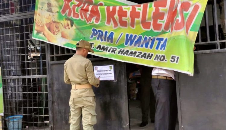 Medankinian.com,  Medan – Tim Gabungan Pemko Medan yang terdiri dari petugas Satuan Polisi Pamong Praja (Satpol PP), Dinas Pariwisata, Dinas Kominfo, Bagian Tata Pemerintahan dan Bagian Hukum Setdako Medan, Senin (17/4) menyegel panti pijat Azra Relfeksi di kawasan Jalan Amir Hamzah. Panti pijat yang berada di Kelurahan Helvetia Timur, Kecamatan Medan Helvetia, kedapatan beroperasi di bulan Ramadan.