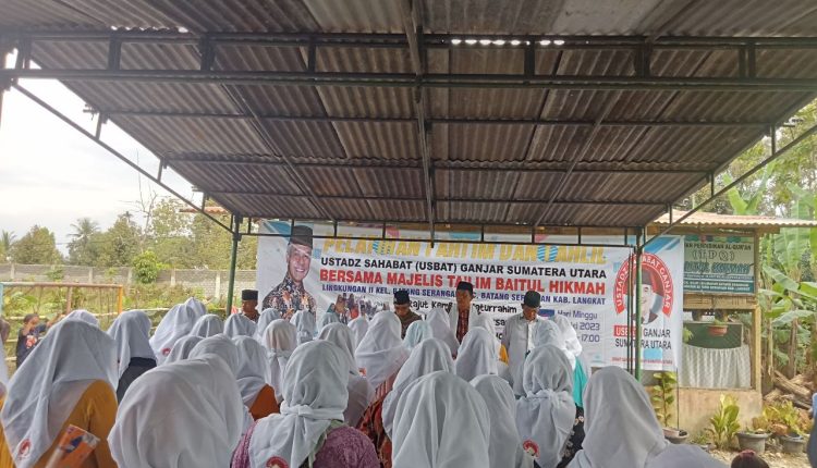 Teranyar, para pendukung Ganjar Pranowo itu menggelar pelatihan tahtim dan tahlil bersama Majelis Taklim Baitul Hikmah, Kelurahan Batang Serangan, Kecamatan Batang Serangan, Kabupaten Langkat, Sumatera Utara, Sabtu (20/5/2023).