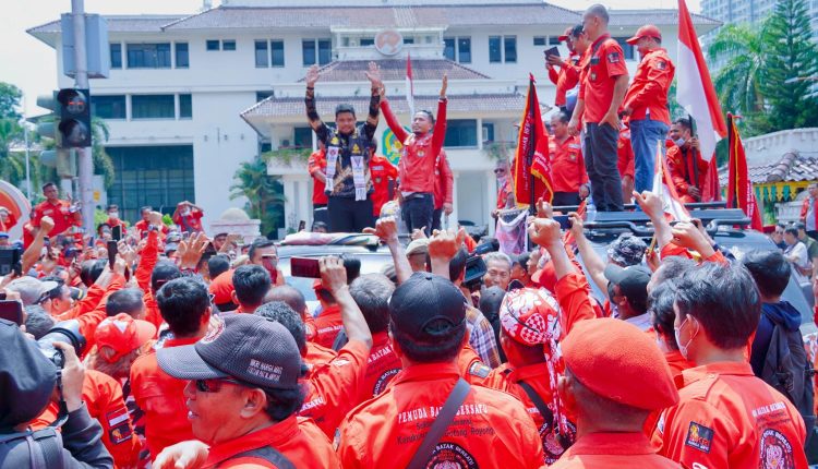 Medankinian.com, Medan – Di tengah panas yang sangat menyengat kulit, Wali Kota Medan Bobby Nasution menemui ratusan massa yang tergabung dalam Pemuda Batak Bersatu (PBB) saat menggelar aksi damai di depan Balai Kota Medan, Kamis (8/6). Tidak itu saja, menantu Presiden Joko Widodo ini langsung naik ke atas mobil komando untuk bergabung dengan sejumlah pengurus organisasi masyarakat Batak yang tengah berorasi menolak keras faham radikalisme dan intoleran di Kota Medan.