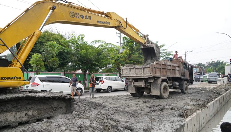 Dinas SDABMBK Perbaiki Saluran drainase di Jalan Wahid Hasyim dan Sei Mencirim Medan Baru