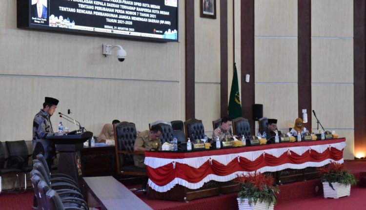 Disampaikan Rudiawan, dalam naskah akademik disebutkan bahwa hasil evaluasi mid term RPJMD Kota Medan Tahun 2021-2026 yang memperlihatkan hasil-hasil capaian kinerja yang belum optimal dari beberapa indikator kinerja utama (IKU) dan indikator kinerja kunci (IKK).