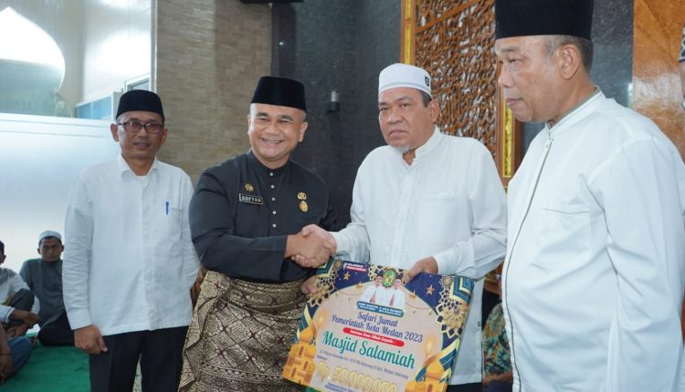 Medankinian.com, Medan – Bantuan senilai Rp 50 juta rupiah untuk kemakmuran mesjid diberikan Wali Kota Medan Bobby Nasution kepada BKM Mesjid Salamiyah. Bantuan ini diserahkan ketika Safari Jumat yang dilaksanakan Pemko Medan di Masjid Salamiyah jalan Bunga Wijaya Kusuma, Medan Selayang, Jumat (25/08/2023).