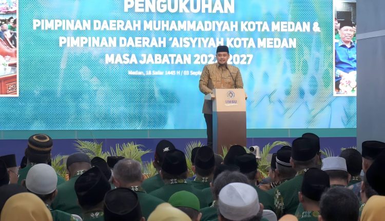 Ajakan ini disampaikannya dalam pengukuhan PD Muhammadiyah dan PD ‘Aisyiyah Medan Masa Jabatan 2022-2027 di Auditorium Universitas Muhammadiyah Sumatera Utara (UMSU), Minggu (3/9).