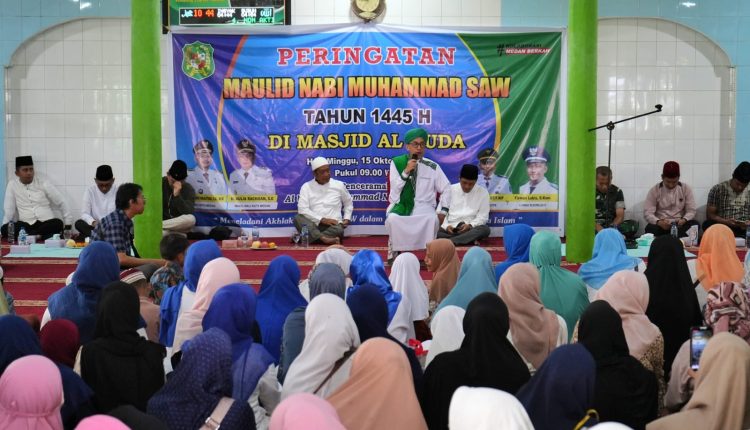 Demikian hal ini dikatakan Wali Kota Medan Bobby Nasution diwakili Kabag Kesra Kosim Nasution ketika menghadiri peringatan Maulid Nabi Muhammad SAW tahun 1445 H di mesjid Al Huda jalan Kemiri III, Kecamatan Medan Kota, Minggu (15/10/2023).