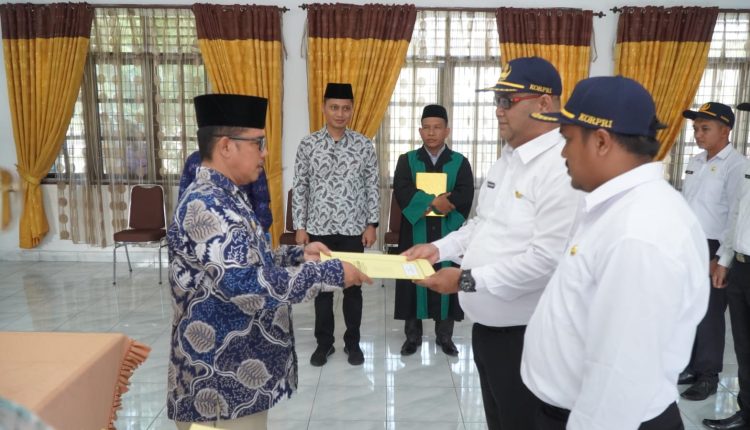 Medankinian.com, Langkat – Plt Bupati Langkat H.Syah Afandin, SH diwakili Asisten Adm Umum Musti, SE, M.Si melantik dan mengambil sumpah jabatan tujuh pegawai pemerintah dengan perjanjian Kerja (PPPK) di lingkungan Pemerintah Kabupaten Langkat di aula kantor BKD Kabupaten Langkat, Jumat (3/11/2023).