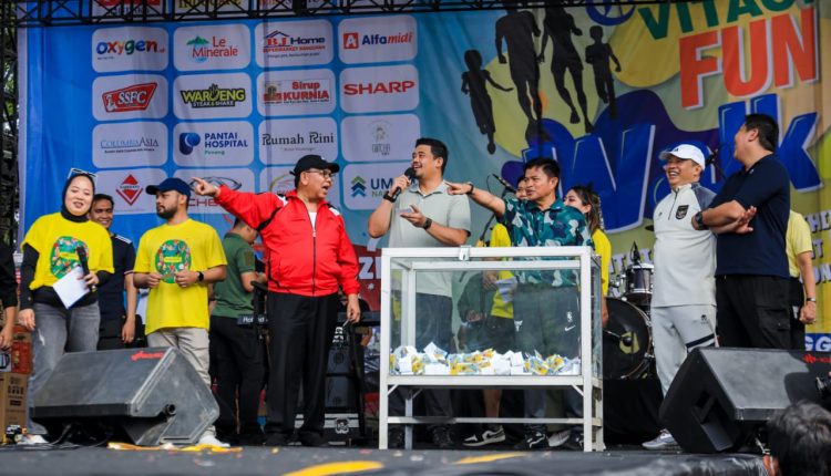 Medankinian.com, Medan – Penarikan nomor undian hadiah doorprize yang dilakukan Wali Kota Medan Bobby Nasution menambah kemeriahan dan keseruan kegiatan Fun Walk yang berlangsung di Lapangan Benteng, Minggu (12/11/2023).