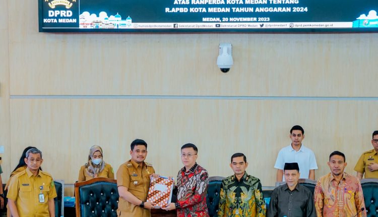 Medankinian.com, Medan – Apresiasi dan ucapan terima kasih disampaikan Wali Kota Medan Bobby Nasution kepada pimpinan dan segenap anggota DPRD Medan yang telah menyetujui Rancangan Peraturan Daerah (Ranperda) Kota Medan tentang Rancangan Anggaran Pendapatan dan Belanja Daerah (R-APBD) Kota Medan Tahun Anggaran (TA) 2024 sebesar Rp 8.026.297.872 disahkan menjadi Perda di Gedung DPRD Medan, Senin (20/11).