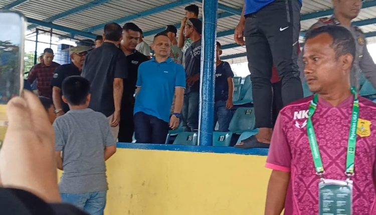 Medankinian.com, Medan – Pendiri (Founder) Sada Sumut FC, Arya Sinulingga, meneriaki dan menunjuk ke arah Presiden Persiraja Banda Aceh, Nazaruddin Dek Gam, yang terlihat berada di tribun VVIP Stadion Baharoeddin Siregar, Lubukpakam, Deli Serdang pada laga Sada Sumut FC vs Persiraja Banda Aceh, Sabtu (25/11/2023) sore.