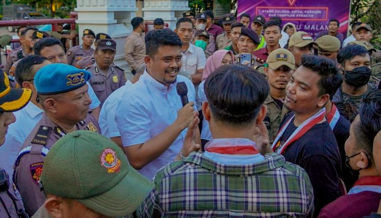Medankinian.com, Medan – Wali Kota Medan Bobby Nasution menerima aksi puluhan mahasiswa yang tergabung dalam Gerakan Mahasiswa Nasional Indonesia (GMNI) Kota Medan di depan Balai Kota Medan, Rabu (20/12) petang. Dengan penuh empati, menantu Presiden Joko Widodo ini mendengarkan apa yang menjadi tuntutan dalam aksi tersebut.