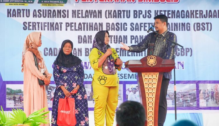 “Saya yakin dan percaya ibu-ibu semua dapat mewujudkan Kampung Nelayan Indah ini menjadi Kampung Pengolahan Ikan,” kata Bobby Nasution saat berdialog dengan warga usai Penyerahan Simbolis Kartu Asuransi Nelayan (Kartu BPJS Ketenagakerjaan), Sertipikat Pelatihan Basic Safety Training (BST) dan Bantuan Pangan Cadangan Beras Pemerintah (BP-CBP) di Kampung Nelayan Indah, Jumat (22/12),