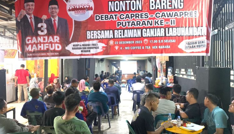 Medankinian.com, Labuhanbatu – Relawan SQUAD Ganjar labuhanbatu menggelar kegiatan nonton bareng (nobar) debat calon wakil presiden (cawapres) pertama di K.MO Cafe Jalan Lintas sumatera, Kelurahan Emplasmen, Kecamatan Bilah hulu, Kota Aeknabara, Kabupaten Labuhanbatu, Jumat (22/12/2023) malam.
