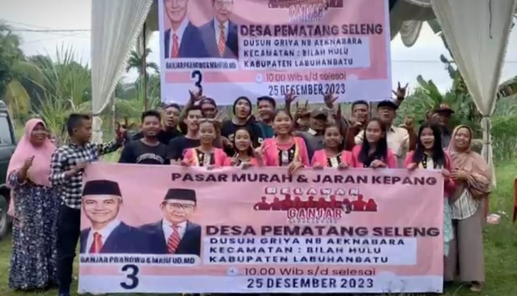 Medankinian.com, Labuhanbatu – Guna membantu meringankan warga yang sedang kesulitan mendapatan harga bahan pokok terjangkau, Tim Relawan Squad Ganjar menggelar Pasar Murah dan pertunjukan Jaran Kepang di Kabupaten Labuhanbatu. Kegiatan yang dilaksanakan, Senin (25/12/2023) dipusatkan di Desa Pematang Seleng, Kecamatan Bilah Hulu, Kabupaten Labuhanbatu, Provinsi Sumatera Utara.