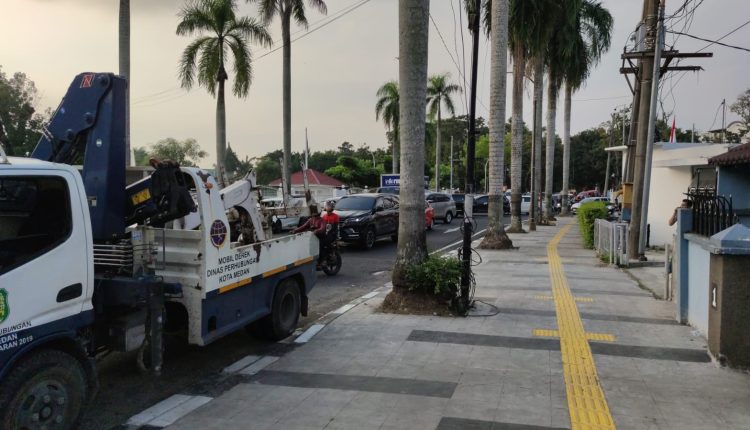Parkir di Kawasan Terlarang, Dishub Medan Tertibkan Kendaraan Roda 4 di Jalan Sudirman