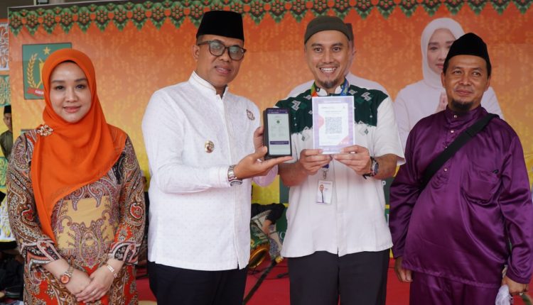Setelah memberikan sambutan, Pj.Bupati Langkat didampingi Pj.Ketua TP PKK Langkat Hj.Uke Retno, Kapolres Langkat AKBP Faisal Rahmad Husein Simatupang,S.I.K,SH,MH, Sekda Langkat Amril,S.Sos,M.AP dan tamu yang hadir melaunching pembayaran digital QRIS (Quick Response Code Indonesia Standar) dan menyantuni 100 orang anak yatim. (riz/mk)