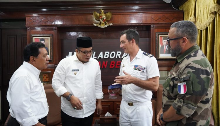 Medankinian.com, Medan – Suasana penuh keakraban mewarnai pertemuan Wakil Wali Kota Medan H Aulia Rachman dengan Komandan Kapal Perang Prancis FNS Vendemiaire F-734 CMR Sebastien Drouelle di Balai Kota Medan, Selasa (26/3).
