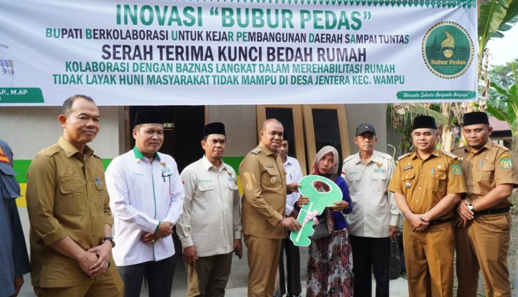 Medankinian.com, Langkat – Program kerja Bubur Pedas (Bupati Berkolaborasi Untuk Kejar Pembangunan Daerah Sampai Tuntas) langsung di implementasikan Basnaz Langkat melalui program bedah rumah Baznas Langkat.