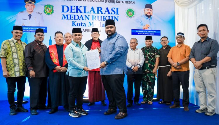 Medankinian.com, Medan – Wali Kota Medan Bobby Nasution memberikan apresiasi setinggi-tingginya kepada Forum Kerukunan Umat Beragama (FKUB) Kota Medan dan majelis -majelis agama yang ada di kota Medan atas dideklarasikannya Medan Kota Kerukunan Umat Beragama