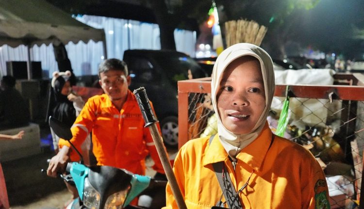 Ditengah Kemeriahan Malam Takbiran, Ada Petugas Kebersihan Yang Selalu Siaga Membersihkan Sampah