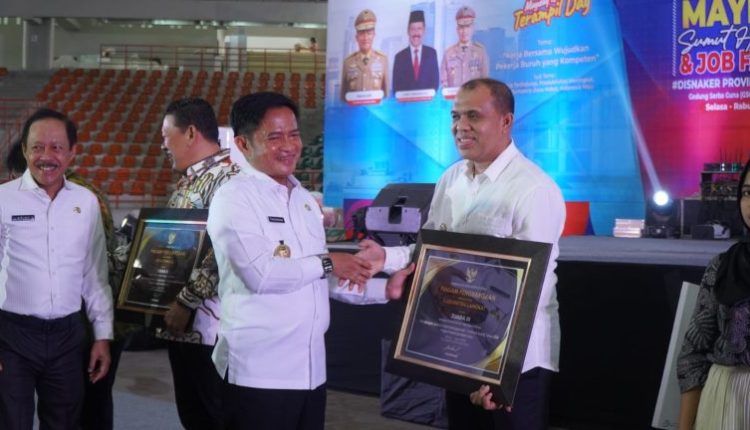 Medankinian.com, Medan – Pj Bupati Langkat M Faisal Hasrimy menerima Paritrana Award 2024 pada perayaan Festival May Day 2024 Sumut Hebat & Job Fair, Rabu (8/5/2024).