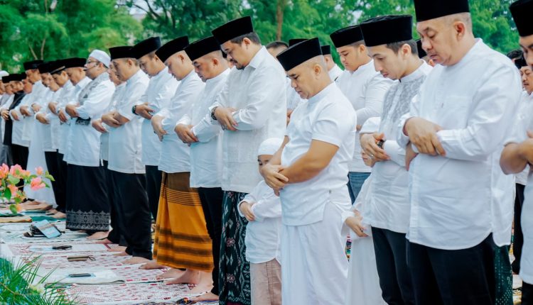 Medankinian.com, Medan – Dengan penuh khusyuk, Wali Kota Medan Bobby Nasution bersama Ketua TP PKK Kota Medan Kahiyang Ayu beserta ketiga buah hati tercinta melaksanakan Salat Iduladha 1445 H di Lapangan Jalan Cassia Raya depan Blok TT Komplek Taman Setia Budi Indah (Tasbi) I, Senin (17/6).