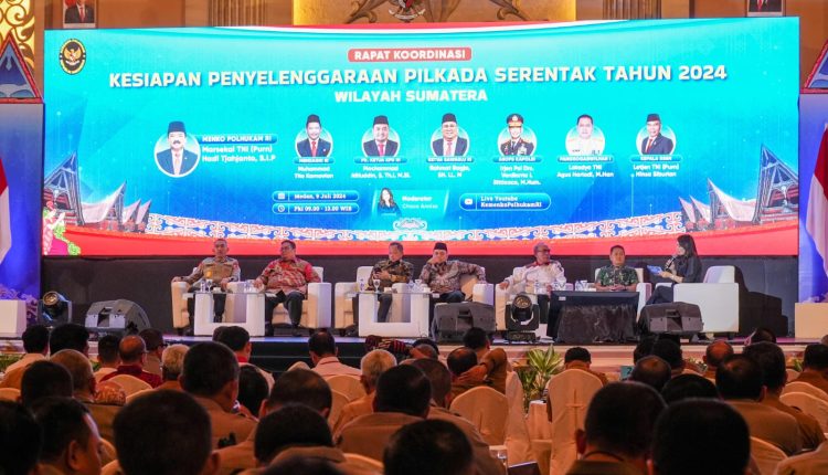 Medankinian.com, Medan – Wali Kota Medan Bobby Nasution mengikuti Rapat Koordinasi (Rakor) Persiapan Pilkada Serentak Tahun 2024 Wilayah Sumatera yang digelar Kementerian Koordinator Bidang Politik, Hukum, dan Keamanan (Kemenko Polhukam) Republik Indonesia, Selasa (9/7) di Regale International Convention. Rakor ini menyatukan pemahaman dan tindakan serta membangun sinergitas agar pilkada serentak ini berjalan aman dan lancar sesuai regulasi dan ketentuan.