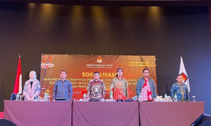 Medankinian.com, Medan — Komisi Pemilihan Umum (KPU) Provinsi Sumatera Utara mengumumkan jadwal pendaftaran untuk pasangan calon Gubernur dan Wakil Gubernur Provinsi Sumatera Utara dalam pemilihan tahun 2024. Pengumuman ini disosialisasikan pada hari Jumat, 23 Agustus 2024, di Hotel Aston Medan.