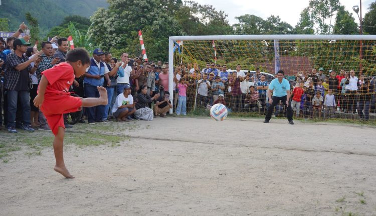 Medankinian.com, Samosir – Entah mimpi apa Rendi Sitanggang, malam kemarin. Diantara banyak anak yang berada di lapangan, bocah 8 tahun ini dipilih untuk menendang bola ke gawang Bobby Nasution. Beruntungnya, tendangan Rendi berhasil membobol gawang Bobby.