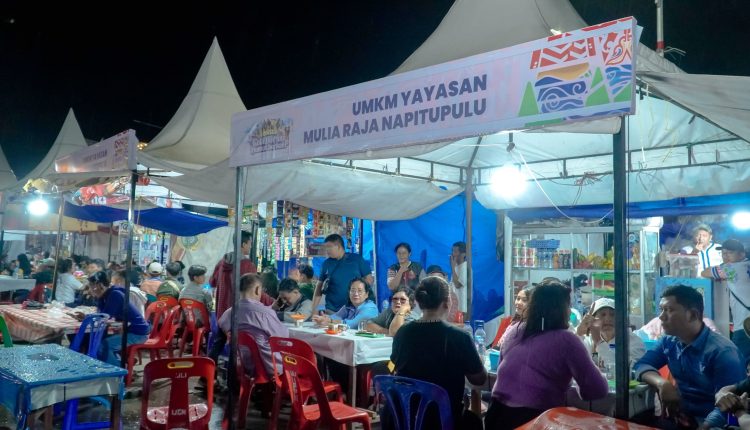 Indah Boru Tambunan, warga Balige, bercerita stan UMKM di hari biasanya hanya sekitar 3 stan yang berjualan. Indah bersama teman-temannya terlihat membeli cemilan di salah satu stan UMKM.