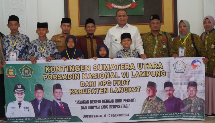 Medankinian.com, Stabat – Penjabat Bupati Langkat, H. M. Faisal Hasrimy, AP., M.AP, melepas secara resmi kontingen Pekan Olahraga & Seni Anak Diniyah (PORSADIN) VI dari Forum Komunikasi Diniyah Takmiliyah Kabupaten Langkat di Rumah Dinas Bupati Langkat, Selasa (12/11/2024).