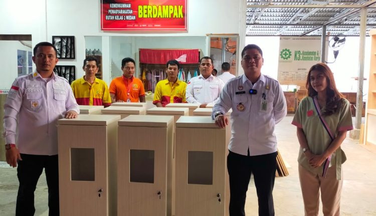 Medankinian, Medan – Produk Box Dispenser hasil karya Warga Binaan Pemasyarakatan (WBP) Rutan Kelas I Medan berhasil menembus pasar hotel di Kota Medan dengan jumlah pemesanan sebanyak 10 unit. Pesanan produk box dispenser itu dalam rangka persiapan menyambut momen Natal dan Tahun Baru 2025.
