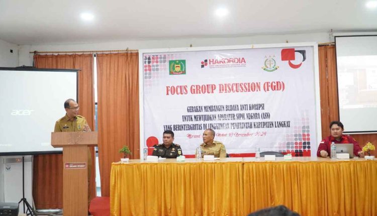 Medankinian.com, Stabat – Dalam rangka memperingati Hari Antikorupsi Sedunia, Pemerintah Kabupaten Langkat menggelar Focus Group Discussion (FGD) dengan tema “Gerakan Membangun Budaya Anti-Korupsi untuk Mewujudkan Aparatur Sipil Negara (ASN) yang Berintegritas” di Grand Hotel Stabat, Selasa (10/12/2024).