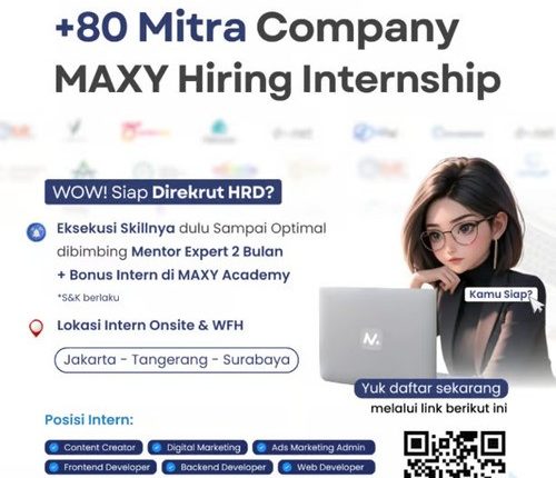 Medankinian.com, Jakarta – MAXY Academy kembali menghadirkan peluang luar biasa bagi talenta muda yang ingin mengembangkan karier di industri digital. Bekerja sama dengan 80 perusahaan mitra, Maxy Academy membuka program magang untuk berbagai posisi strategis, termasuk Content Creator, Digital Marketing, Ads Marketing Admin, Frontend Developer, Backend Developer, Web Developer, UI/UX Designer, Marketing Campaign, Content Marketing, SEO Specialist, Brand Marketing, Admin Marketing, dan Marketing Performance.