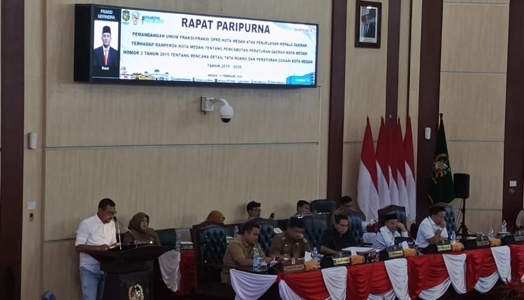 Medankinian.com, Medan – Janses Simbolon Ketua Fraksi Partai Hanura – PKB DPRD Kota Medan menyampaikan pencabutan Perda No 2 Tahun 2015 tentang Rencana Detail Tata Ruang dan Peraturan Zonasi, sebagaimana nota pengantar yang disampaikan Walikota Medan.