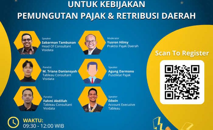 Dalam rangka mendukung transformasi digital di sektor pemerintahan daerah, Visidata, perusahaan penyedia jasa visualisasi data, akan menyelenggarakan seminar bertajuk “Tableau Analytics untuk Kebijakan Pemungutan Pajak & Retribusi Daerah”. Acara ini diadakan sebagai bentuk edukasi sekaligus sosialisasi penerapan teknologi analitik visual dalam meningkatkan efisiensi dan transparansi proses pemungutan pajak serta retribusi daerah.