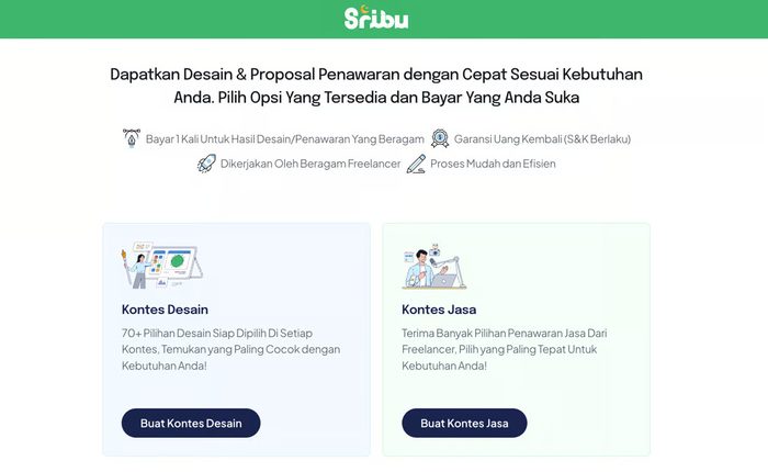 “Sribu selama ini dikenal dengan dua fitur utama, yaitu Fitur Jasa dan Kontes. Sebelumnya, fitur kontes hanya tersedia untuk desain. Kini, dengan hadirnya Kontes Jasa, pelaku usaha dapat menerima puluhan penawaran dari freelancer hanya dengan satu kali pembayaran, tanpa perlu mencari atau merekrut satu per satu,” ujar Alexandro Wibowo, COO Sribu.