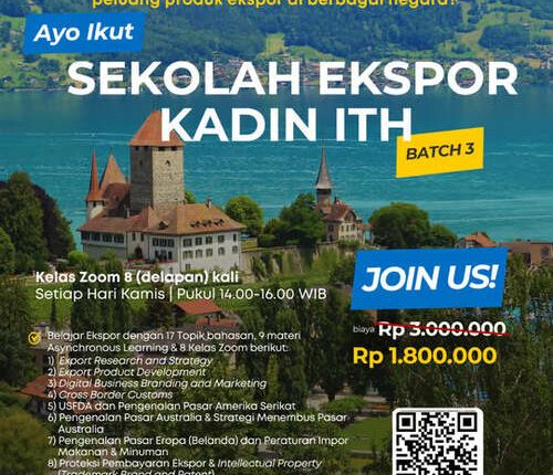 Medankinian.com, Jakarta – KADIN Indonesia Trading House (KADIN ITH) kembali menghadirkan Sekolah Ekspor Batch 3, sebuah program edukasi komprehensif bagi para calon eksportir yang ingin memahami peraturan ekspor di berbagai negara serta menemukan peluang ekspor produk mereka.Program ini akan berlangsung dalam 8 sesi kelas Zoom interaktif setiap hari Kamis, mulai 20 Maret hingga 22 Mei 2025, pukul 14.00 – 16.00 WIB.