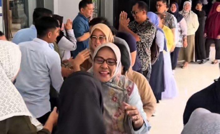 Dari pantauan wartawan langsung di lapangan usai acara Apel, para pegawai dan honorer saling bermaaf-maafan antara satu dan lainnya. Terlihat wajah mereka ada yang meneteskan air mata, akibat adanya rasa haru. (sdf/mk)