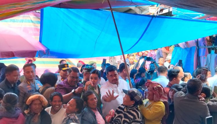 Medankinian.com, Humbahas – Gubernur Sumatera Utara Bobby Afif Nasution mendampingi Wakil Presiden RI Gibran Rakabuming Raka meninjau Pasar Rakyat Dolok Sanggul, Humbang Hasundutan, Sumatera Utara, Jumat (16/5/2025). Kedatangan rombongan untuk meninjau langsung kondisi pasar sekaligus menyapa para pedagang dan juga masyarakat yang berbelanja.