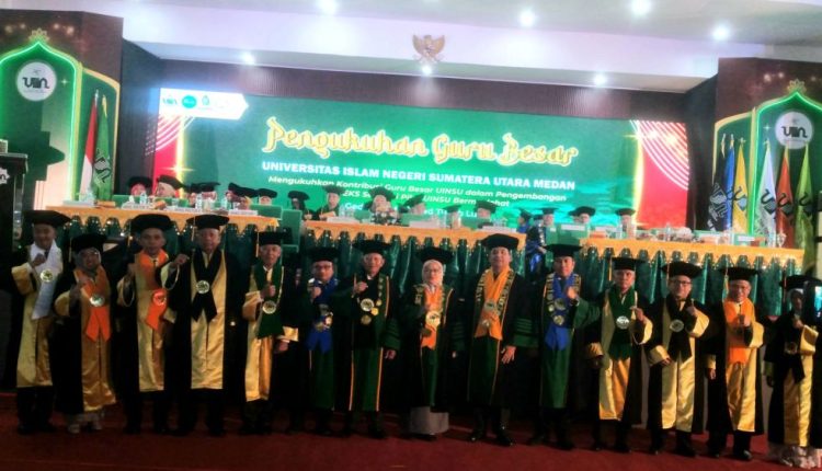 Medankinian.Com, Medan – Universitas Islam Negeri Sumatera Utara (UINSU) Medan mengukuhkan sembilan guru besar baru dalam berbagai bidang keilmuan di Gelanggang Mahasiswa H.M. Arsjad Thalib Lubis Jalan IAIN/Jalan Sutomo Medan, Kamis (22/5/2025).