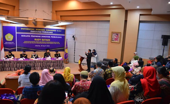 Medankinian.com, Jakarta – dr. Rudy Sutadi, Sp.A, MARS, SPd.I berhasil meraih gelar Doktor dalam bidang Psikologi Pendidikan dari Universitas Persada Indonesia (UPI) – Y.A.I., Jakarta, setelah sukses mempertahankan disertasi berjudul “Efektivitas Metode Smart ABA Sebagai Pengembangan ABA untuk Mengajar dan Melatih Kemampuan Bicara dan Membaca pada Autisi” dengan predikat Sangat Memuaskan.