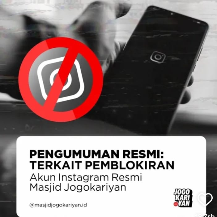 Upaya pemblokiran ini disampaikan melalui unggahan akun Instagram alternatif resmi milik masjid, yakni @masjidjogokariyan.id, Selasa (24/6/2025) pagi.