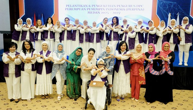 Medankinian.com, Medan – Ketua TP PKK Kota Medan, Airin Rico Waas, mengukuhkan pengurus DPC Perempuan Pemimpin Indonesia (Perpina) Medan periode 2025-2027, di Lt.10 Gedung Bank Sumut, Selasa, (22/7/2025).