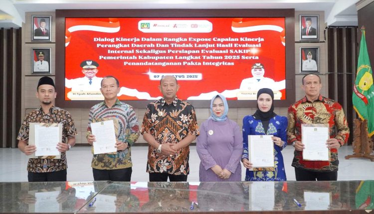 Komitmen terhadap peningkatan kinerja diperkuat melalui penandatanganan Pakta Integritas oleh para Asisten, Staf Ahli Bupati, Inspektur, Sekretaris DPRD, Kepala Perangkat Daerah, dan Camat se-Kabupaten Langkat.