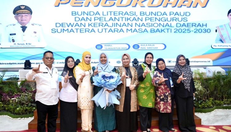 Medankinian.com, Medan – Bupati Langkat H. Syah Afandin, SH, melalui Wakil Bupati Tiorita Br Surbakti, SH, menghadiri acara pengukuhan Bunda Literasi, Bunda PAUD, sekaligus pelantikan Dewan Kerajinan Nasional Daerah (Dekranasda) se-Sumatera Utara, Rabu (13/8/2025) di Aula Kantor Gubernur Sumatera Utara, Medan.