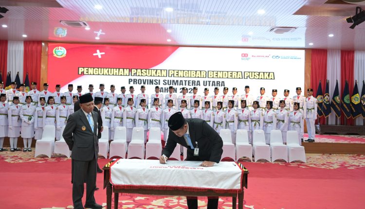 Medankinian.com, Medan – Gubernur Sumatera Utara (Sumut) Bobby Nasution mengukuhkan 71 anggota Pasukan Pengibar Bendera Pusaka (Paskibraka) Sumut, yang akan bertugas mengibarkan bendera pusaka pada 17 Agustus 2025 di Lapangan Astaka. Pengukuhan tersebut berlangsung di Aula Tengku Rizal Nurdin, Jalan Sudirman 41 Medan, Jumat (15/8/2025).