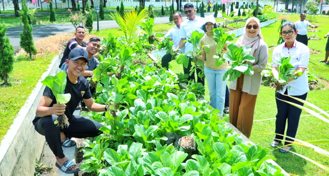 Hasil panen berupa sawi dan tomat tersebut kemudian dibagikan kepada masyarakat sekitar serta pegawai di lingkungan Kantor Bupati Simalungun.