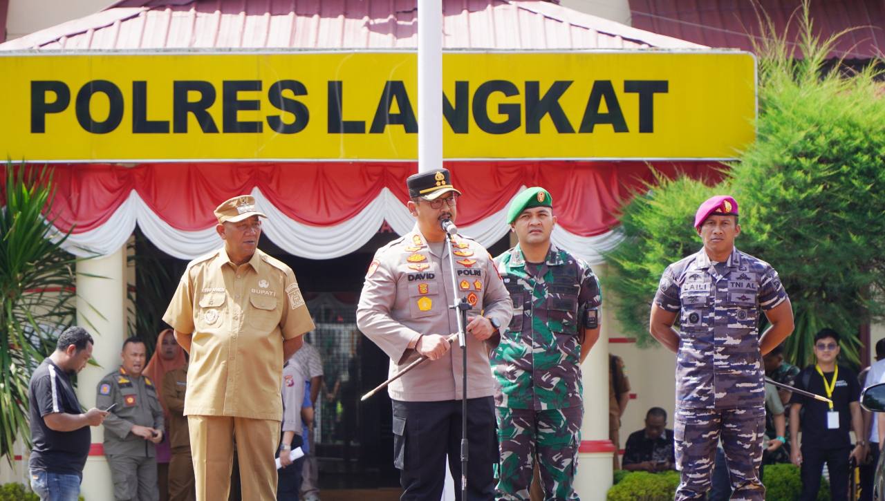 Usai rapat Forkopimda, Bupati Langkat mendampingi Kapolres dalam memimpin Apel Gabungan di Lapangan Polres Langkat. Dalam arahannya, Kapolres menegaskan komitmen untuk bertindak tegas terhadap aksi unjuk rasa yang anarkis, merusak fasilitas umum, maupun melakukan tindakan kriminal.