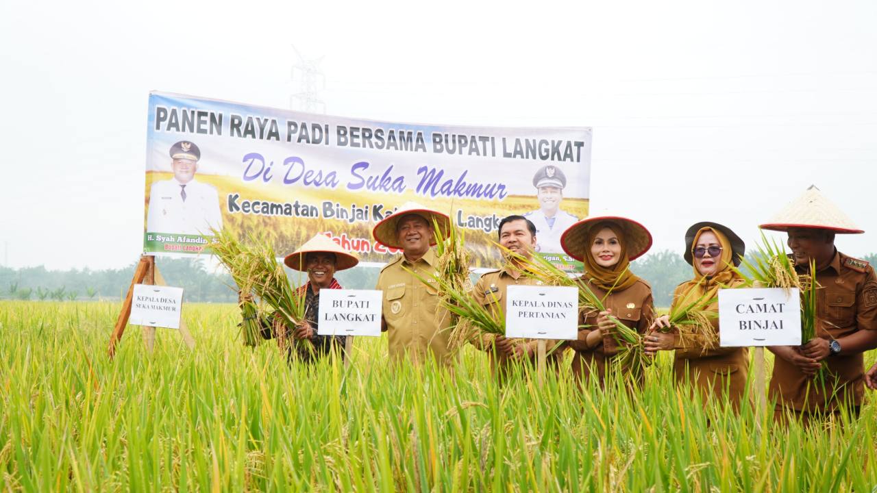 Medankinian.com, Kec. Binjai – Bupati Langkat H. Syah Afandin, SH menghadiri syukuran hasil panen raya sekaligus meresmikan Kilang Padi Sukma Jaya dalam rangka perayaan Hari Ulang Tahun (HUT) ke-29 Desa Suka Makmur, Kecamatan Binjai, Senin (8/9/2025).