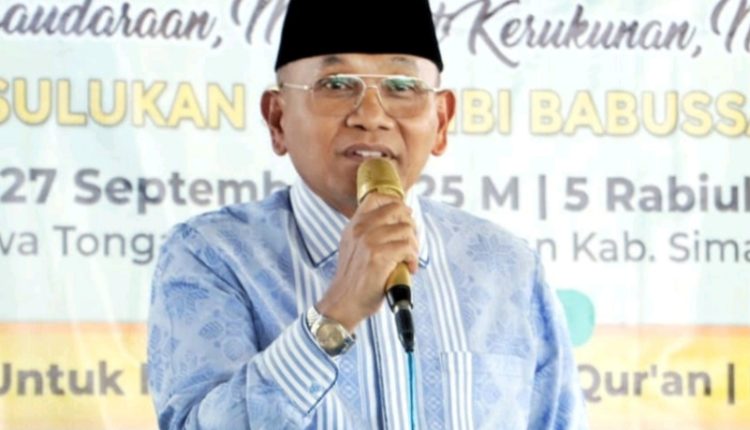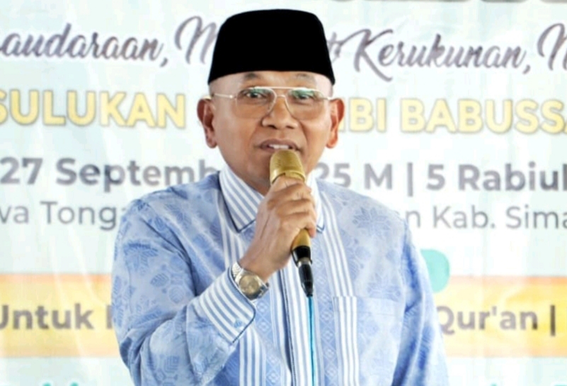 SIMALUNGUN – Bupati Simalungun Anton Achmad Saragih bersama Wakil Bupati Benny Gusman menghadiri Haul ke-16 Tuan Guru Batak Syekh Abdurrahman Rajagukguk QS di Pondok Persulukan Serambi Babussalam, Nagori Jawa Tongah, Kecamatan Hatonduhan, Sabtu (27/9/2025).