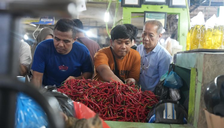 Medankinian.com, Medan – Satuan Tugas (satgas) penanganan inflasi bentukan Gubernur Sumut Bobby Nasution kembali melakukan intervensi harga di sejumlah pasar dengan mendistribusikan cabai merah yang didatangkan dari Jawa Timur. Bahkan dari intervensi ini, terjadi penurunan drastis harga cabai dari Rp55.000 per/kg menjadi Rp35.000 per kilogramnya.